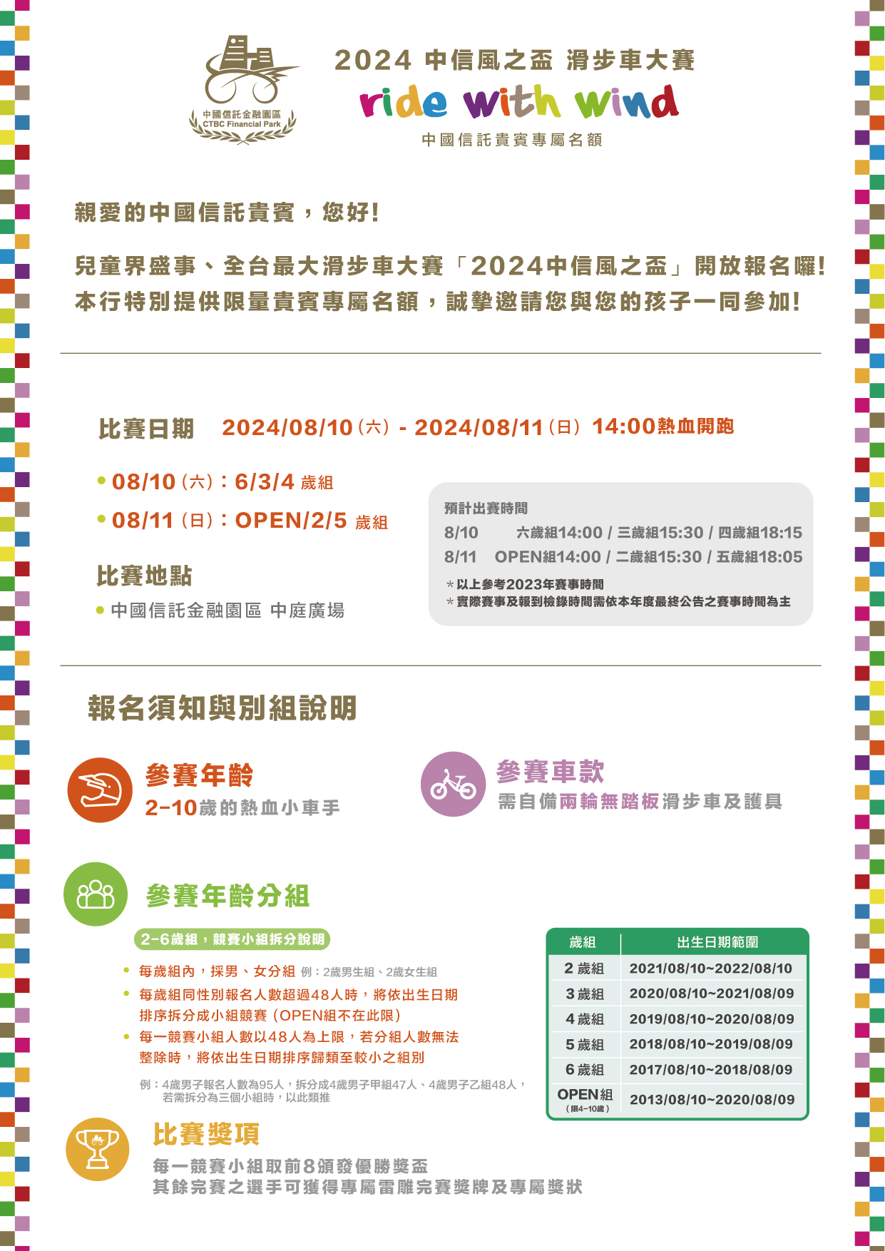 - 8/10 - 6歲組(出生日期2017/08/10~2018/08/09) 2024/08/10