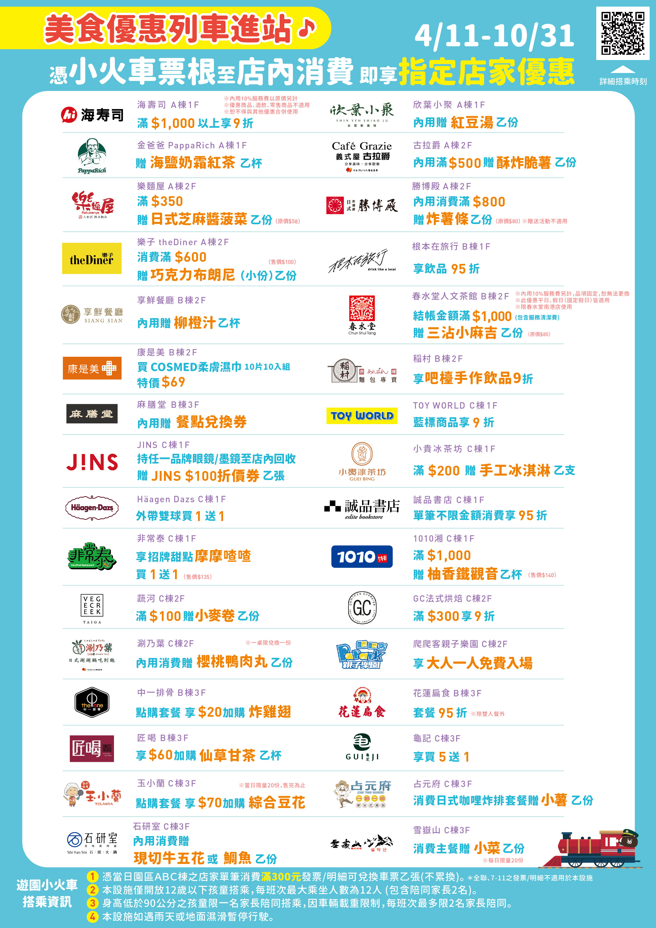*小火車票根優惠僅限兌換乙次,不得重複兌換
