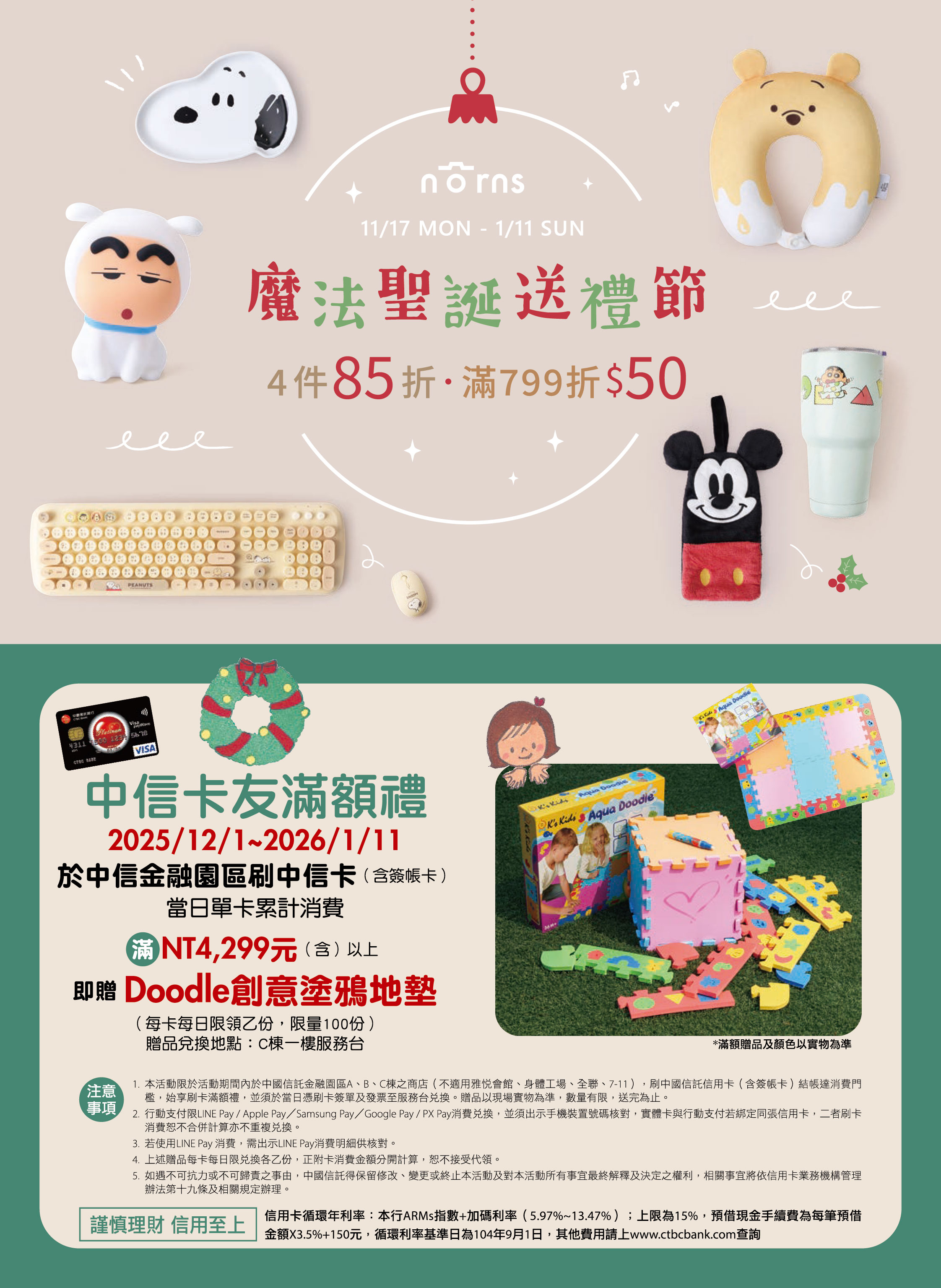 💳️ 中信卡友禮|消費滿$4,299 贈創意塗鴉地墊