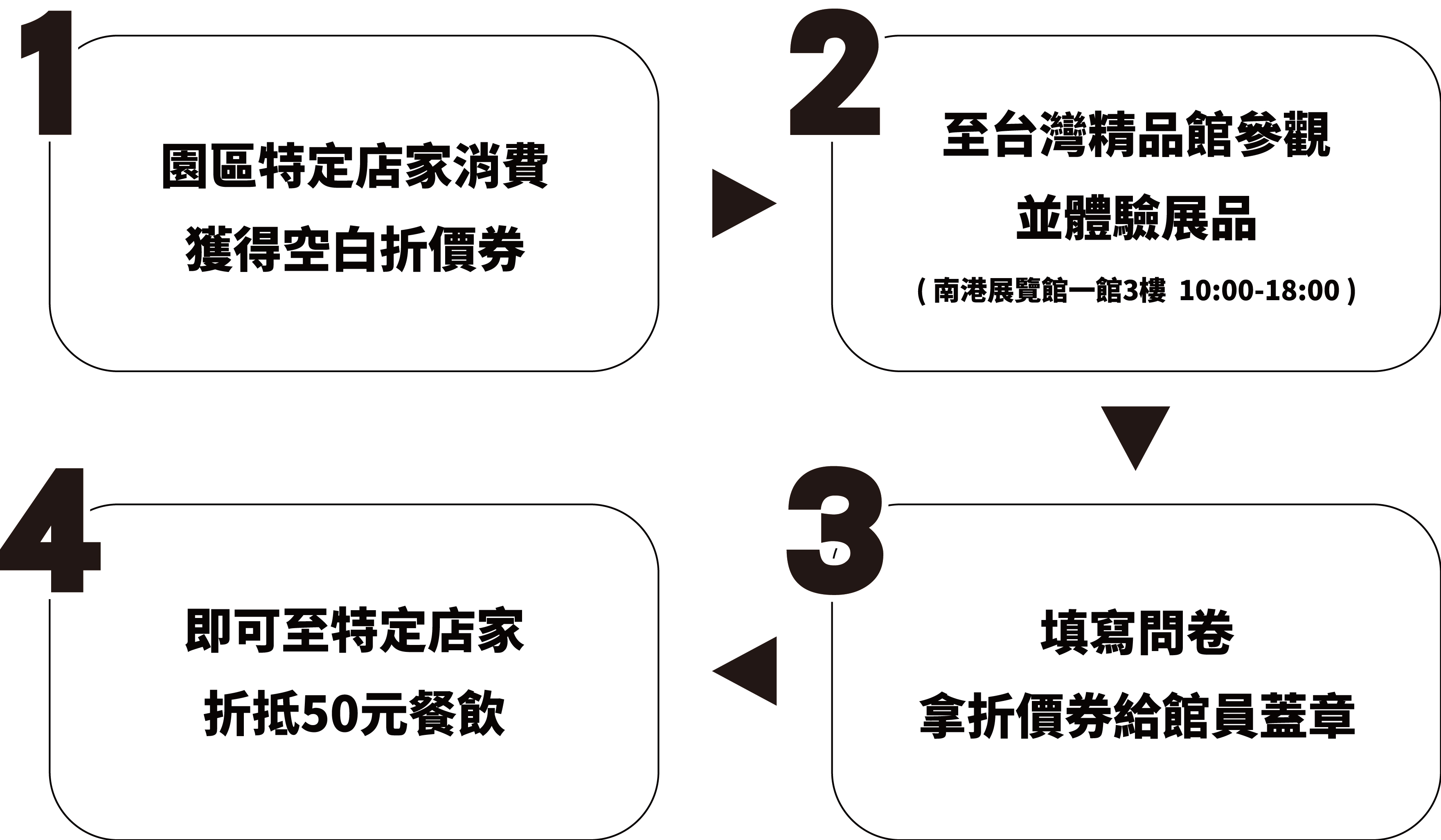 台灣精品館觀展後完成步驟 即可獲得50元餐飲折價!